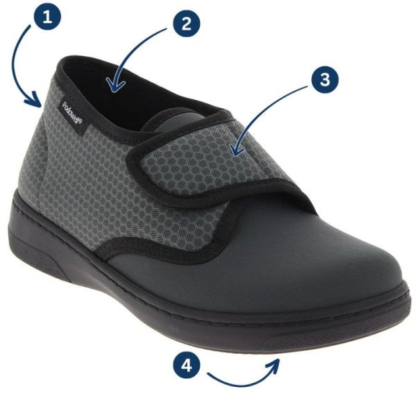 Le chausson Aldo02 gris est en tissu extensible à l’avant-pied, s’adaptant parfaitement aux pieds déformés et volumineux. Sa tige semi-montante permet un maintien optimal de la cheville. Le scratch avant offre une grande ouverture pour chausser le modèle et permet d’ajuster le chausson au volume du pied. Le produit est lavable en machine à 30°C pour une hygiène optimale.
