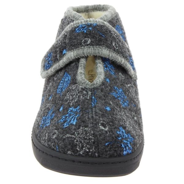 Un chausson montant naturellement chaud et antibactérien grâce à sa doublure laine. Danaelle est un chausson d’hiver aux motifs fantaisies brillantes. Au-delà de son esthétique original et de sa doublure chaude, c’est aussi un chausson femme confort et adaptée aux pieds sensibles, notamment grâce à sa bride large auto-agrippante, son grand volume sur l’avant-pied et sa semelle légère et antidérapante.