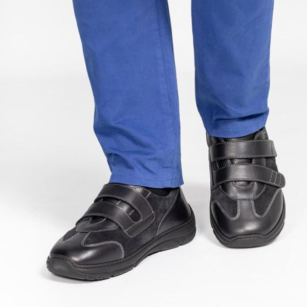 Cette chaussure basse à scratch pour homme est conçue pour chausser discrètement et facilement des pieds fragiles.