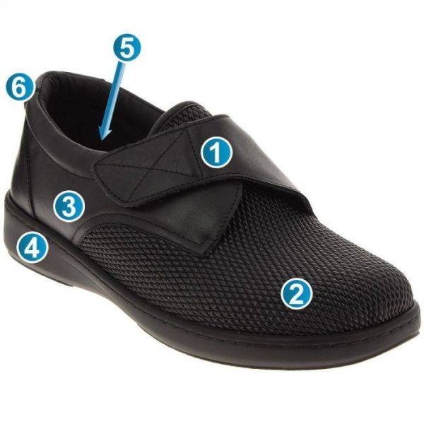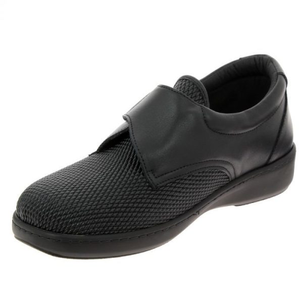 Grâce à son avant-pied extensible, cette chaussure est adaptée aux pieds souffrant d’hallux valgus, d’orteils en griffe ou en marteau. Ce derby est prévu pour une utilisation à la fois en extérieur et en intérieur.