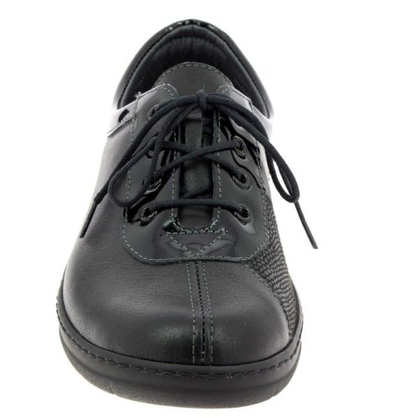 Cette chaussure fermée a été conçue avec un cuir souple qui s’adaptera parfaitement à l’anatomie du pied, tout en le protégeant. Par ailleurs, la zone de pression de l’hallux valgus est soulagée par du tissu extensible. Son généreux volume chaussant est réglable par un lacet. La doublure Onsteam® anti-transpirante et anti-humidité apporte un grand confort et une hygiène impeccable. La première de confort est amovible et peut être remplacée par une semelle sur mesure. La semelle est anti-dérapante et assure une marche sécurisée.
