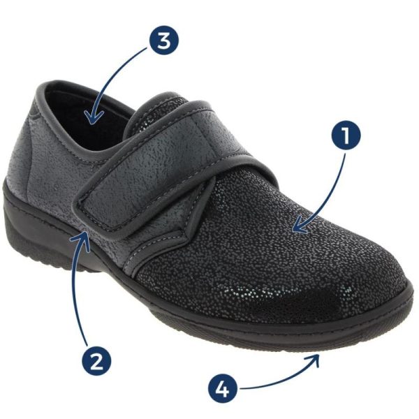Cette chaussure prévue pour un usage intérieur ou extérieur est très extensible sur l’avant-pied grâçe à un élégant tissu stretch. La semelle intérieure est amovible, lavable et est perforée pour une circulation optimale de l’air et une évacuation rapide de l’humidité. Sa semelle extérieure légère et antidérapante permet une marche confortable en toute sécurité.