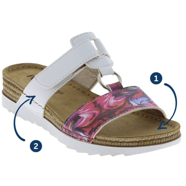 Notre mule confort Izaya possède une semelle en cuir souple et un très bon maintien du pied par sa bride ajustable.