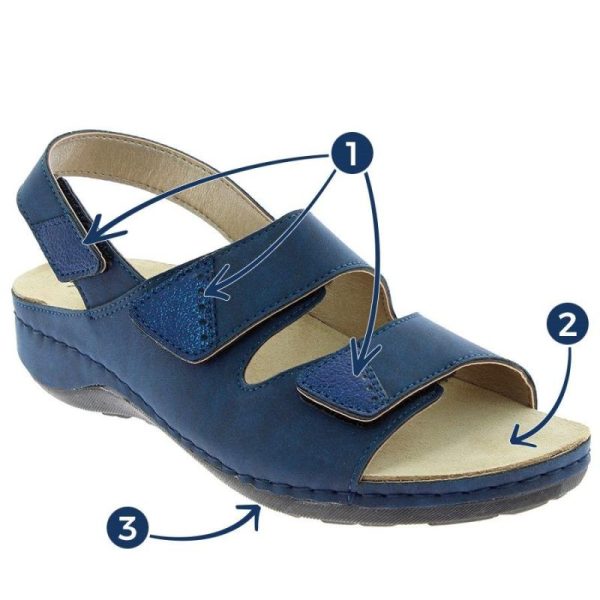 Cette sandale marine est parfaite pour un usage quotidien, elle allie confort et praticité à sa semelle en cuir amovible et sa bride réglable pour un maintien du pied optimal