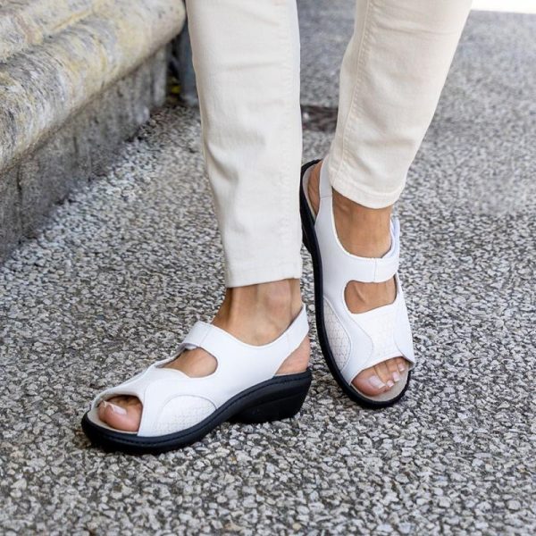 La sandale thérapeutique pour hallux valgus Delya possède une allure chic et féminine. Les brides en cuir souples et extensibles maintiennent le pied parfaitement. La sandale comprend 3 zones extensibles : sur les côtés des orteils et sur le dessus pour s’adapter parfaitement à l’anatomie des orteils. Cette sandale offre une grande stabilité grâce à sa semelle antidérapante. La doublure anti-bactérienne et anti-transpirante permet au pied de respirer.