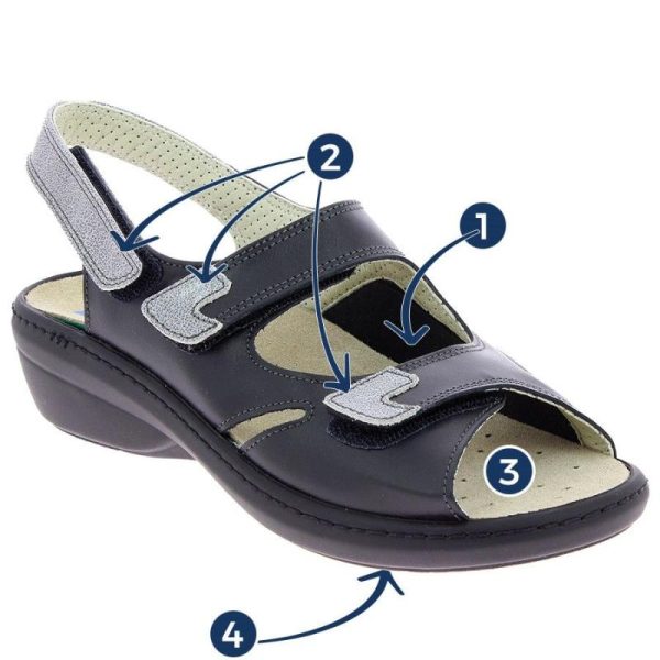 Cette sandale en cuir très féminine maintient parfaitement le pied avec ses 3 points de réglage scratch. Le talon de 3 cm de haut donne une allure élégante tout en offrant une grande stabilité.