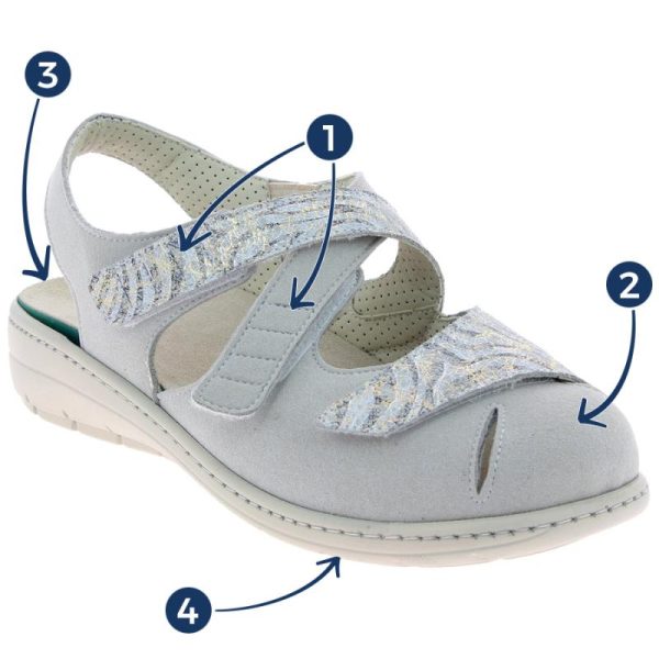 Cette sandale orthopédique Greta beige dispose d’un avant fermé pour protèger les orteils fragiles ainsi que d’une bride découpable pour un ajustement parfait au pied.